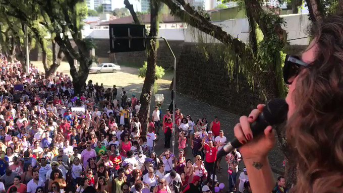 Um ato contra a candidatura do deputado Jair Bolsonaro (PSL) reuniu cerca de 150 mil pessoas em São Paulo, conforme informou os organizadores do protesto “Mulheres contra Bolsonaro” na capital paulista. Os manifestantes lotaram o Largo da Batata com cartazes e faixas com o slogan “#EleNão”, em referência ao candidato do PSL. Segundo o G1, participaram do manifesto integrantes da União da Juventude Socialista, União Estadual dos Estudantes Secundaristas, sindicatos, coletivo feminista da ECA USP, militantes com bandeiras do PT, PSOL, PSTU e Rede. Em pelo menos 12 estados do país ocorreram manifestações contra o ex-capitão do Exército. Até as 13h, 40 cidades em 10 estados tinham registrado manifestações contrárias a Bolsonaro: Goiás, Minas Gerais, Pará, Paraíba, Paraná, Pernambuco, Rio Grande do Norte, Rio Grande do Sul, Santa Catarina e São Paulo. (Bahia Notícias)