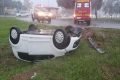 O veículo capotou na estrada de terra. O socorro encontrou as duas vítimas em estado grave no local.