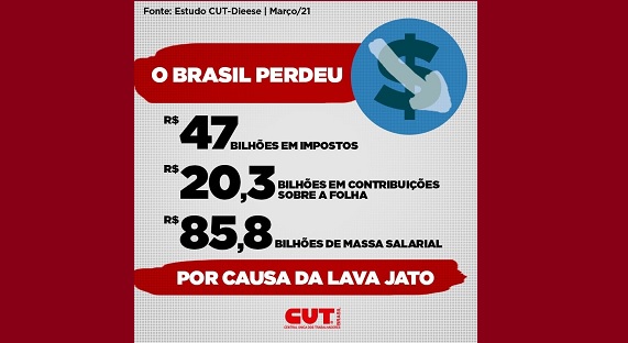 Os procuradores do MP, contudo, promoveram uma exposição e desmoralização sem precedentes dos grupos nacionais mais relevantes da economia, avaliou o presidente da central sindical. Ele destacou, nesse sentido, as revelações feitas pela operação Spoofing, da Polícia Federal, que investigou a invasão de grupos e pessoas relacionadas à Lava Jato. “Tomamos conhecimento de que, a pretexto de combater a corrupção, a Lava Jato tinha um claro projeto de poder. As mensagens não deixam dúvida. Foi um instrumento de perseguição política. Não vamos esquecer nunca que a Lava Jato foi o principal cabo eleitoral do Bolsonaro.”