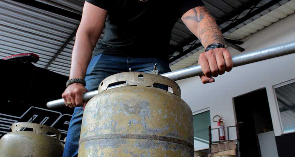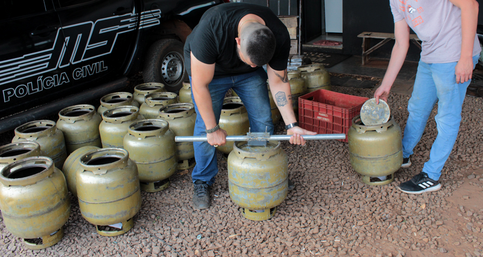 Na data, a equipe policial criou na hora, uma ferramenta auxiliar na abertura dos botijões. Além disso, foi usado também um martelo.
