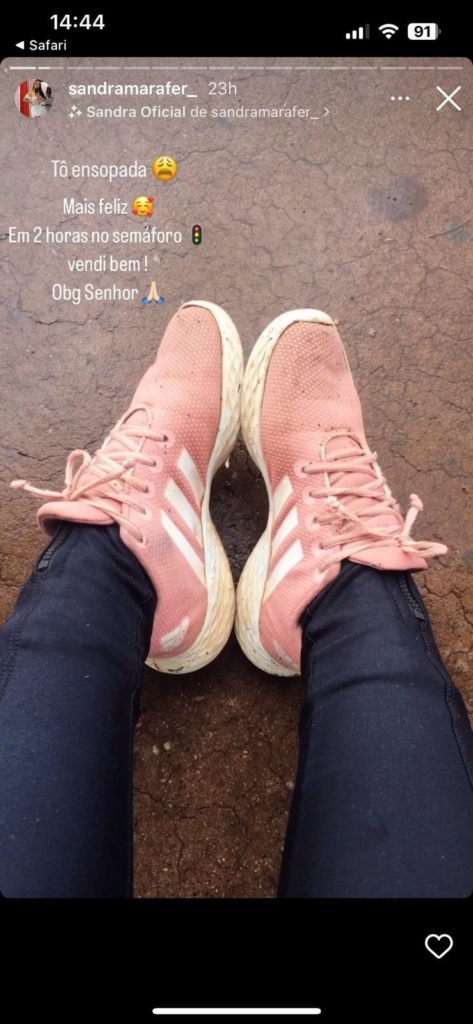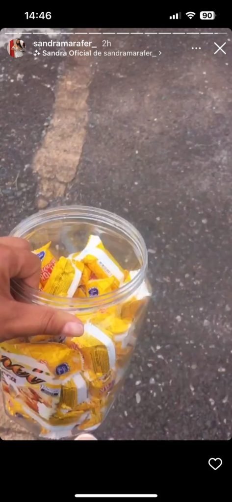 Em um Story publicado nessa segunda-feira (3/4), Sandra Mara comemorou o fato de um de seus seguidores tê-la identificado na rua e comprado grande parte dos doces: “Como Deus é maravilhoso, gente. Teve um seguidor que viu meus Stories e comprou várias paçocas para me ajudar! Muito obrigada, J.V., pela ajuda, que Deus te retribua em dobro! Ainda existe muita gente boa no mundo!”.