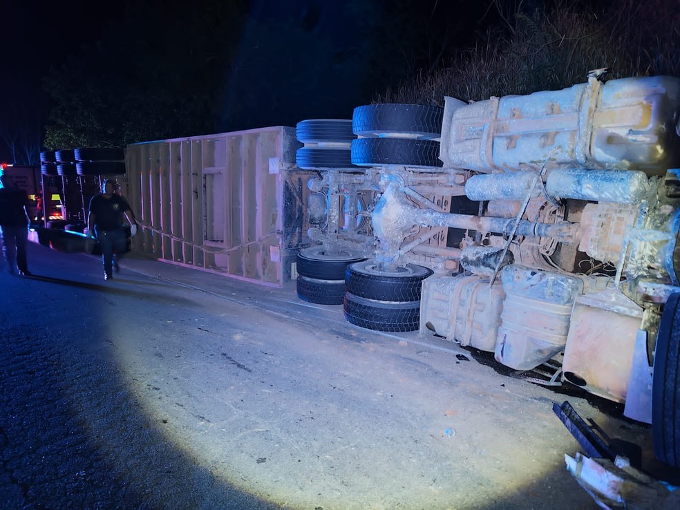 Segundo a polícia, o veículo bateu em outro caminhão que vinha no sentido contrário, após tombar na pista.